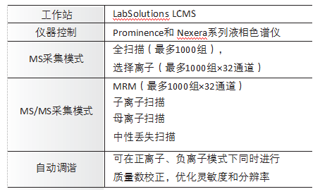 其它: LCMS-8045結合了世界領先的島津UHPLC系統(tǒng)的色譜分離能力,并應用島津獨有的超快速技術(UF技術),其中包括超快速MRM測定,MS/MS采集和超高速正負極切換