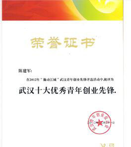 陳建軍同志與2012年“瀚動江城”武漢青年創(chuàng)業(yè)先鋒評選活動中被評為“武漢十大優(yōu)秀青年創(chuàng)業(yè)先鋒”