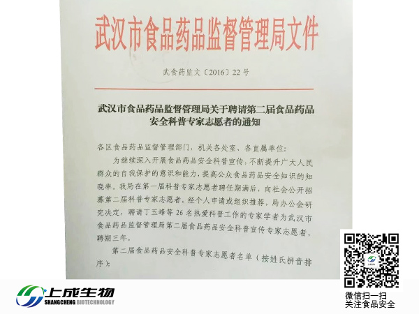 武漢市食品藥品監(jiān)督管理局聘請(qǐng)孟利君為安全科普宣傳專家志愿者