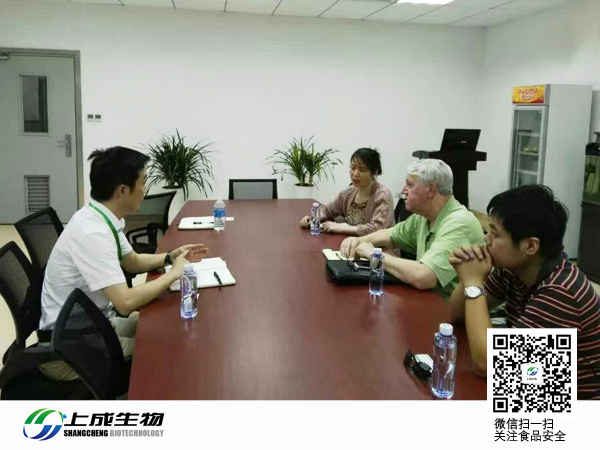 有朋自遠(yuǎn)方來,不亦樂乎。2016年7月22日下午,美國休斯頓的STEPHEN主席興致勃勃地來到武漢上成生物科技有限公司就食品安全檢測中外合作項(xiàng)目進(jìn)行洽談。