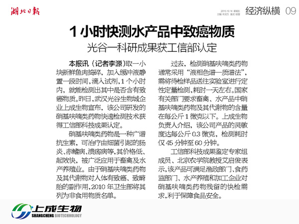 湖北日報(bào):1小時(shí)快測水產(chǎn)品中致癌物質(zhì)