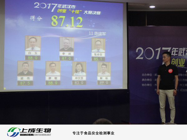 來(lái)參加比賽的20家企業(yè)都是經(jīng)過(guò)各區(qū)層層選拔推選的優(yōu)秀企業(yè),上成生物代表洪山區(qū)推選企業(yè)參加此次比賽。經(jīng)過(guò)前期的初賽、復(fù)賽,一路過(guò)關(guān)斬將,殺入決賽。決賽階段,上成生物總經(jīng)理陳建軍上臺(tái),對(duì)公司現(xiàn)階段發(fā)展情況和未來(lái)規(guī)劃做了陳訴。臺(tái)下評(píng)委現(xiàn)場(chǎng)提問(wèn)打分。上成生物獲得87.12分的好成績(jī)。經(jīng)過(guò)比賽,最終上成生物獲得“十佳”提名獎(jiǎng)。