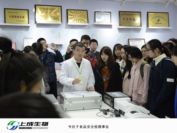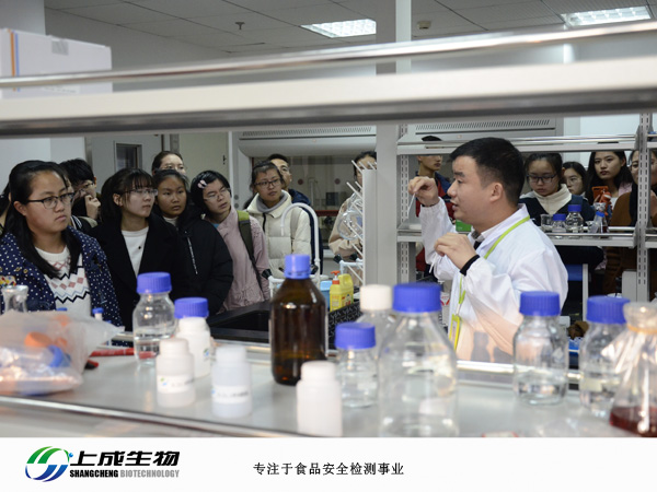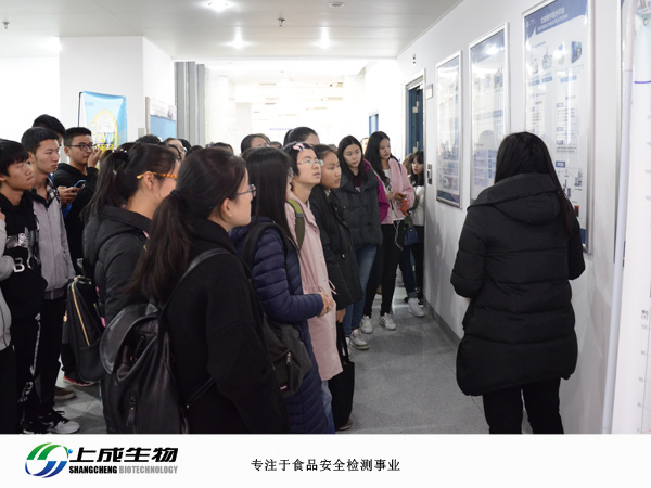 同學(xué)們首先來到光谷生物城內(nèi)的科技成果交易展示廳。學(xué)習(xí)了解生物城的整體發(fā)展規(guī)劃。第二站來到來到武漢生物技術(shù)研究院的公共服務(wù)平臺,參觀學(xué)習(xí)最新的技術(shù)前沿。第三站同學(xué)們來到了上成生物的研發(fā)基地。由技術(shù)負(fù)責(zé)人為大家用簡單易懂的語言講解食品安全的一些基礎(chǔ)知識。告訴同學(xué)們平時飲食的一些健康小常識。