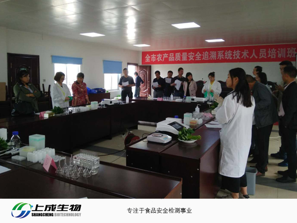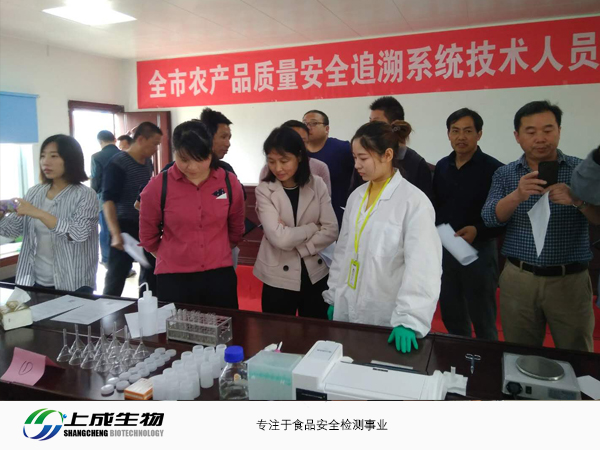 2018年4月12日,上成生物技術(shù)人員赴黃陂培訓(xùn)全市農(nóng)產(chǎn)品質(zhì)量安全追溯系統(tǒng),為黃陂區(qū)農(nóng)牧企業(yè)和各街道辦檢測(cè)室技術(shù)人員提供技術(shù)指導(dǎo)與服務(wù)。