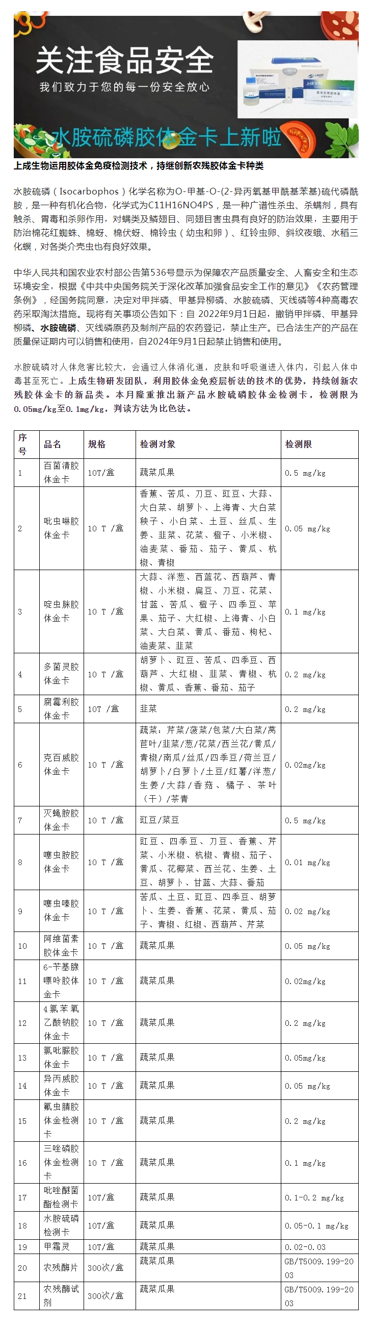 上成生物運(yùn)用膠體金免疫檢測(cè)技術(shù),持續(xù)創(chuàng)新農(nóng)殘膠體金卡種類
