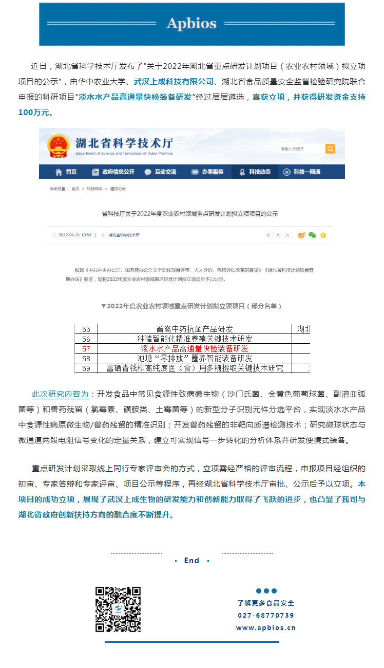 上成生物“喜提”湖北省重點(diǎn)研發(fā)計(jì)劃項(xiàng)目