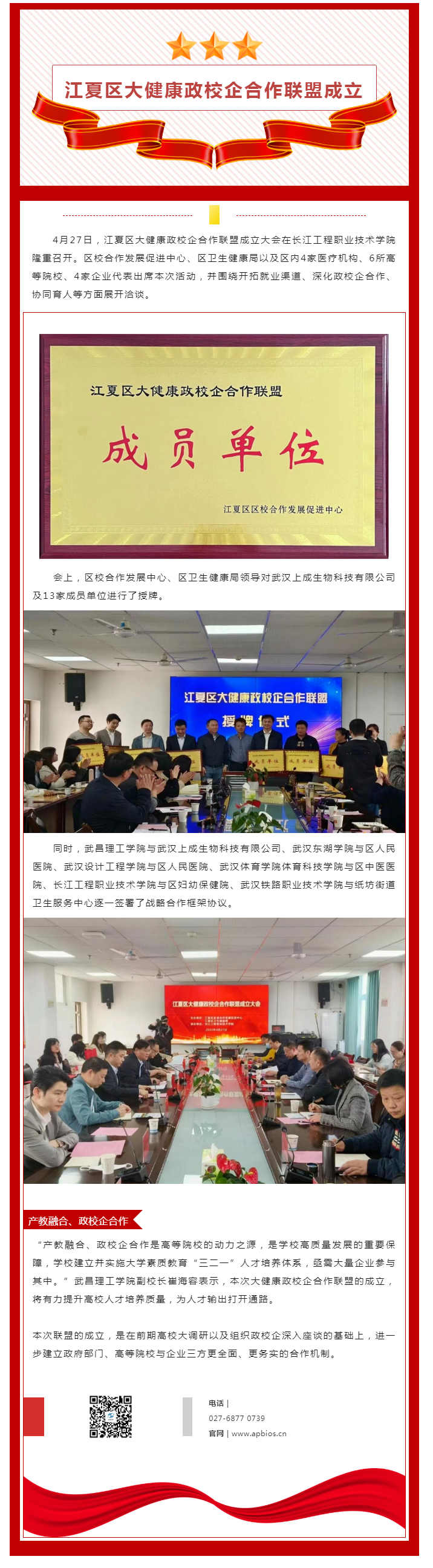上成生物加入江夏區(qū)大健康政校企合作聯(lián)盟