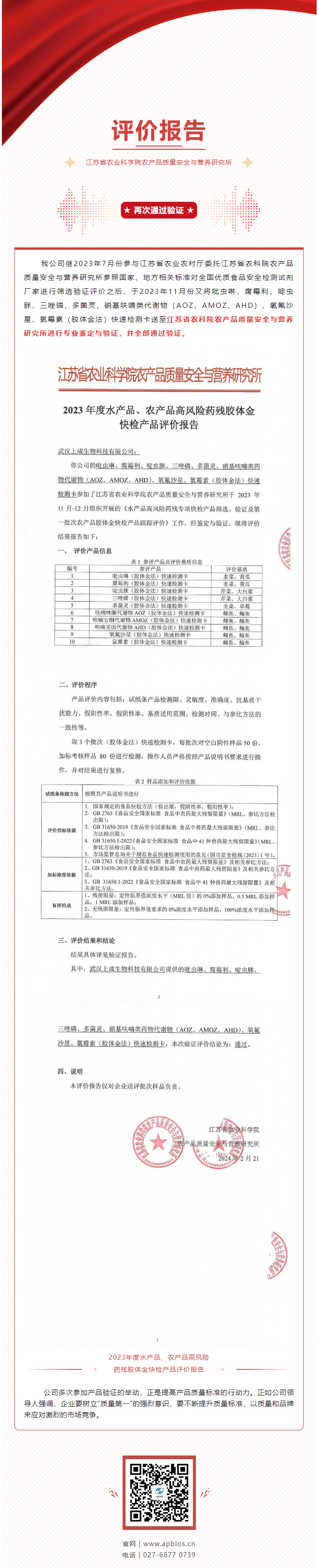 喜報(bào)|我司農(nóng)獸殘膠體金檢測(cè)卡又獲江蘇省農(nóng)業(yè)科學(xué)院農(nóng)產(chǎn)品質(zhì)量與研究所驗(yàn)證